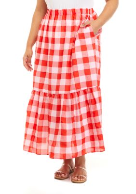 English Factory Plus Size Tiered Gingham Skirt Belk