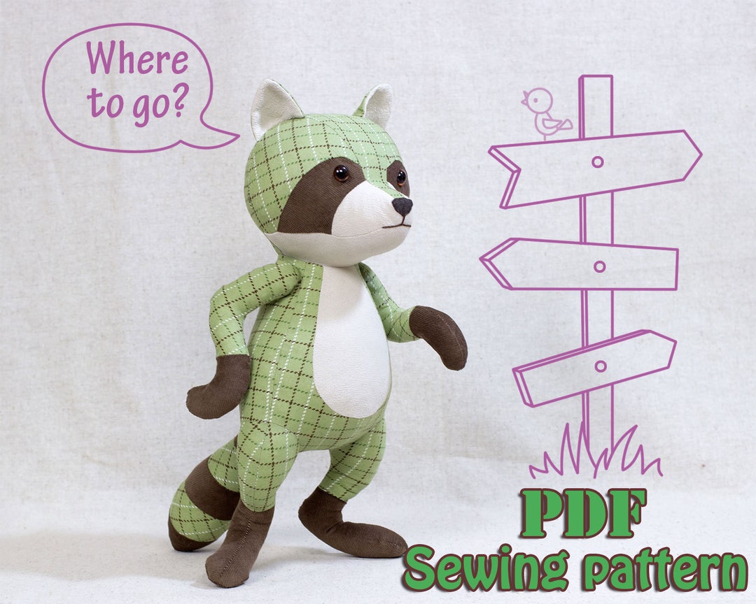 Stuffed Racoon Pattern Tutorial Pdf Sewing Pattern Stuffed Etsy